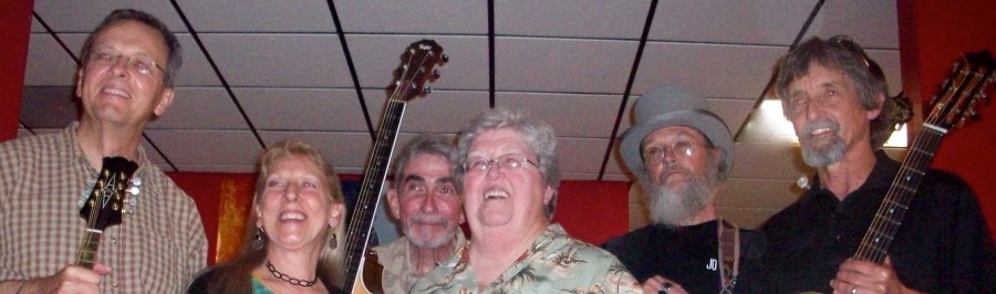 The Davis Creek Rounders; left to right; Ken Wagoner, Linda Stofful, Rick Cochran, Marideth Sisco, Van Colbert, Denise Crider.