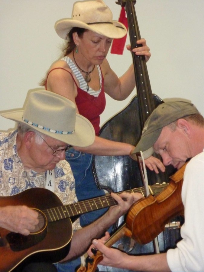 In the back on bass, Tedi May, front left, ___, front right on fiddle Billy Ward.
