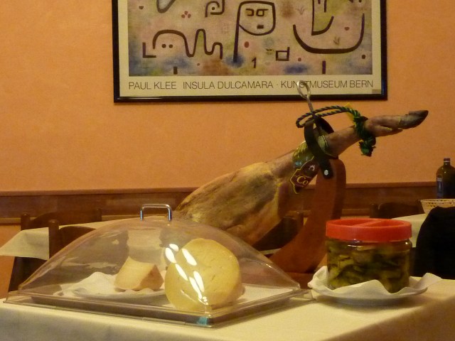I wore my dress coat and nothing on my head, so arrived a bit damp, but not awkwardly so. The luncheon was buffet-style, with some small tables, not nearly enough, so people mostly wandered around, plates in hand, and schmoozed. I latched onto some small handmade pastas that are a local specialty whose name I can neither spell nor remember. At the time, it was something warm, and went well with the wine — more local Barbera, smooth and delicious. Afterward we staggered back the mile or so to walk off the meal, and agreed that the next best thing was a nap. We each retired to our well-curtained and well heated rooms. And so went the afternoon.