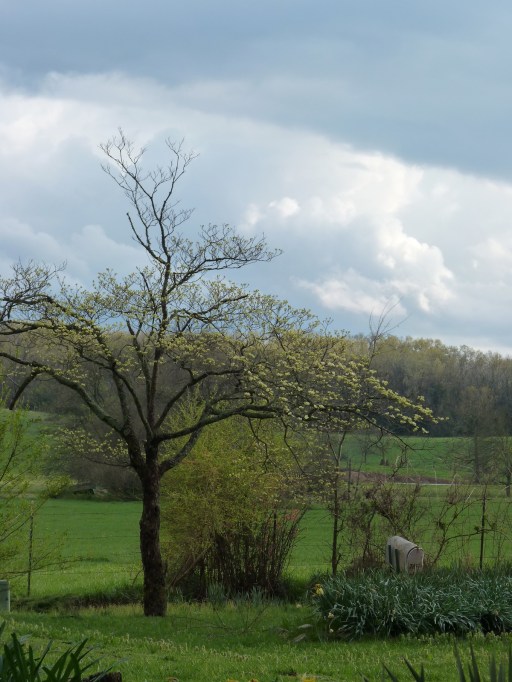 IT’S ANOTHER SUNDAY in Paradise, rather the Ozarks in springtime. All the yellow flowers blooming their heads off, songbirds, both the locals and the migrants, making a splendid racket and warm but blustery weather making its magnificent march across the skies. Starting tonight, the forecast is for rain and significant flooding through Saturday. Wow. Where city folks may be sending us waves of pity, we’re out here thinking, Hmm. Nice. Ponds will get washed and freshened, Water table will get topped off, and with luck I’ll have an excuse to just watch the garden grow, instead of being out there working in it. Good all around. We hope for no damage to areas along the rivers. But spring high water is an exciting time that sometimes provokes good fireside tales. Of course, some of my Pollyanna-like good cheer is because I live on a hill. My apologies and well wishes to folks down in the hollers. May the waters be kind.