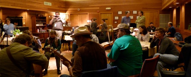 I spent the weekend there, Friday night to hang with Van Colbert and two of his brothers from the Fabulous Colbert Brothers family band. I count the experience a success for two reasons – One, the guys were both accomplished and charmed the pants off the crowd of assembled folklorists, and Two, they proclaimed me an Honorary Colbert. I think I’ll be Aunt Nancy.