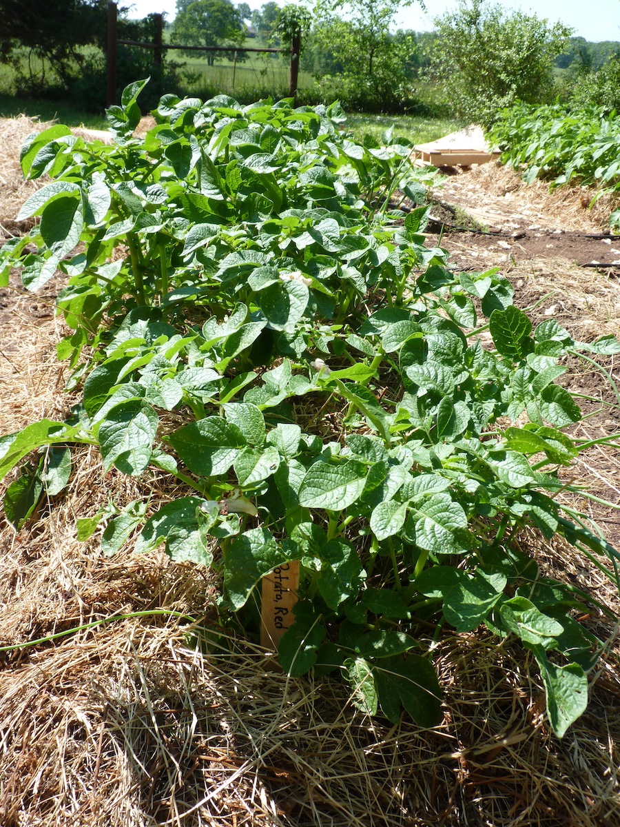 One of two rows of potatoes, all heirloom.
