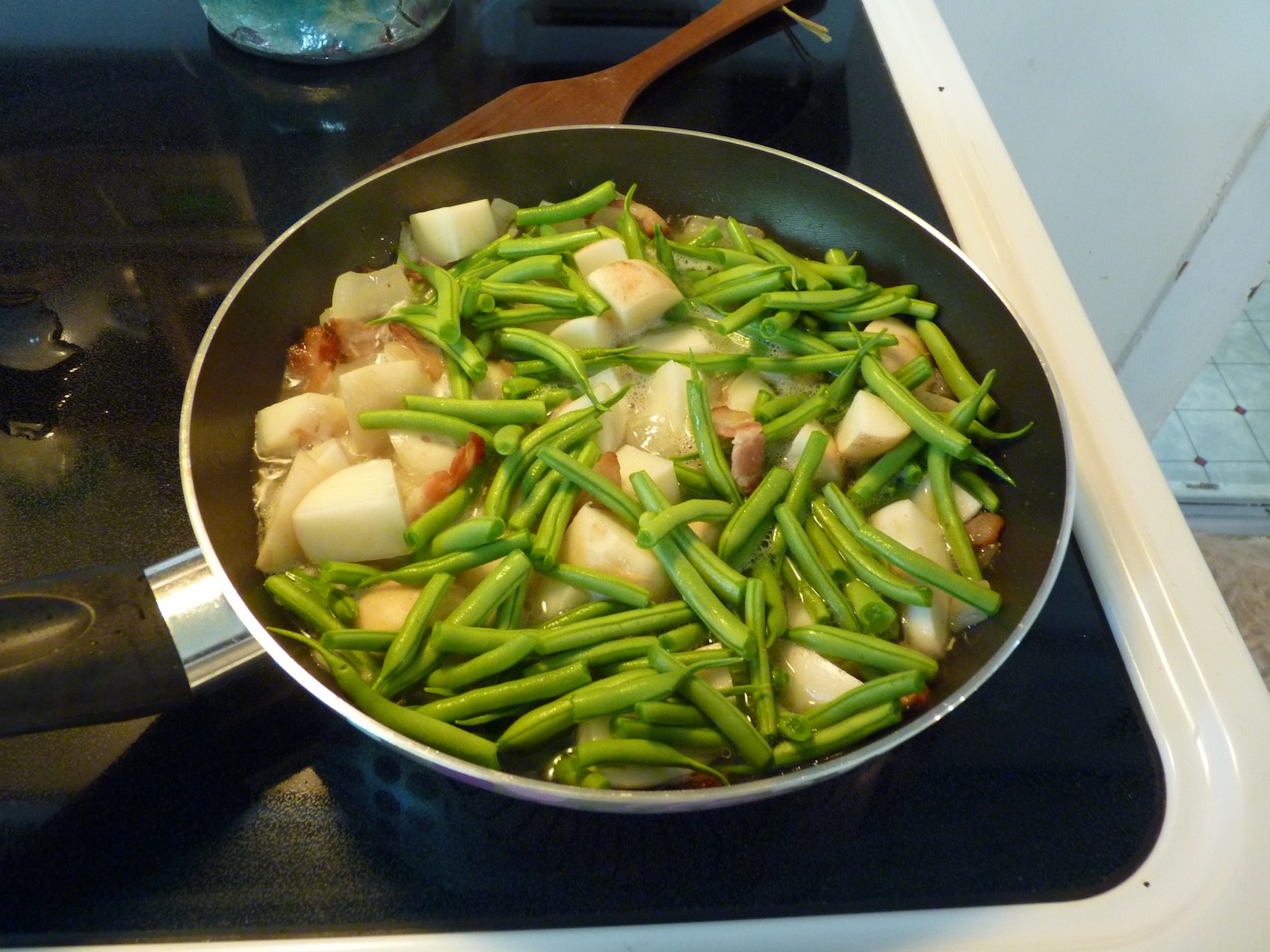 New potatoes and, green beans cooked up with bacon and onions.