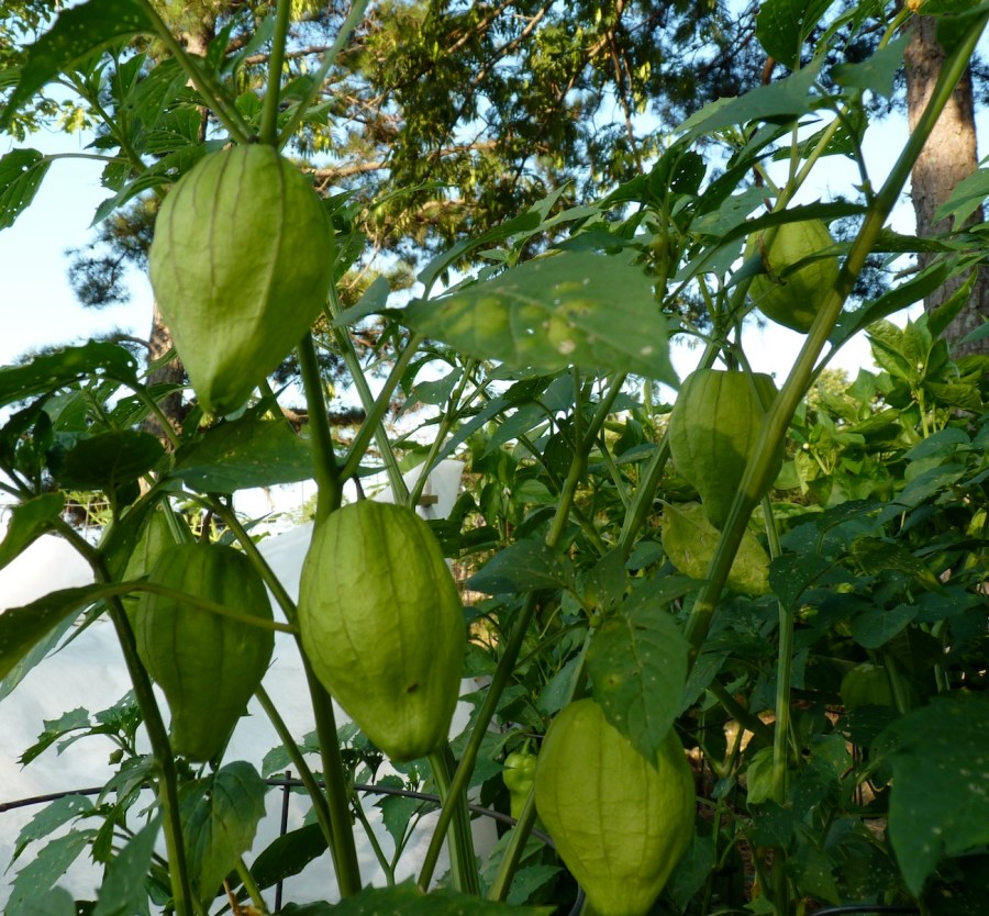 Tomatillos – the plants are loaded and on todays menu is Chili Verde with a sauce containing, peppers, tomatillos, onions, garlic, and herbs, all from the garden.